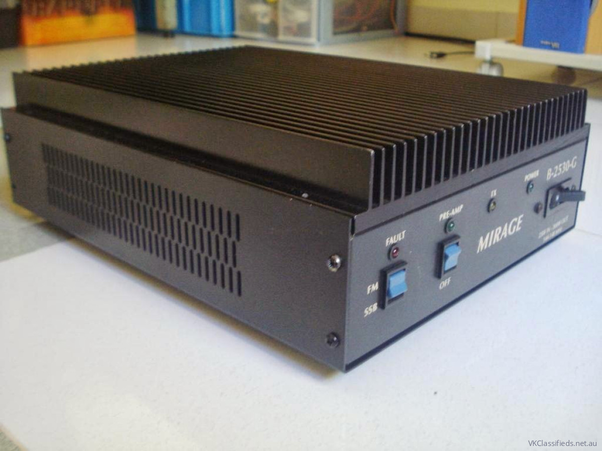 Mirage B2530G 25w in 300w out 144 - 148mhz, just back from Guy (VKRadio) for alignment and service ready for its new owner. Was going to keep for the car but its just too big (260W x 330L x 100H), might be interested in a trade in of a Mirage B25180G or similar (for my car). Recently purchased an EB104 1kw 2m amp for home station so have no use for this one draws around 50 plus amps at 13.8vdc for full output. These amplifiers were well over $1000USD when purchased. Reasonable offers considered, rare item in Australia.