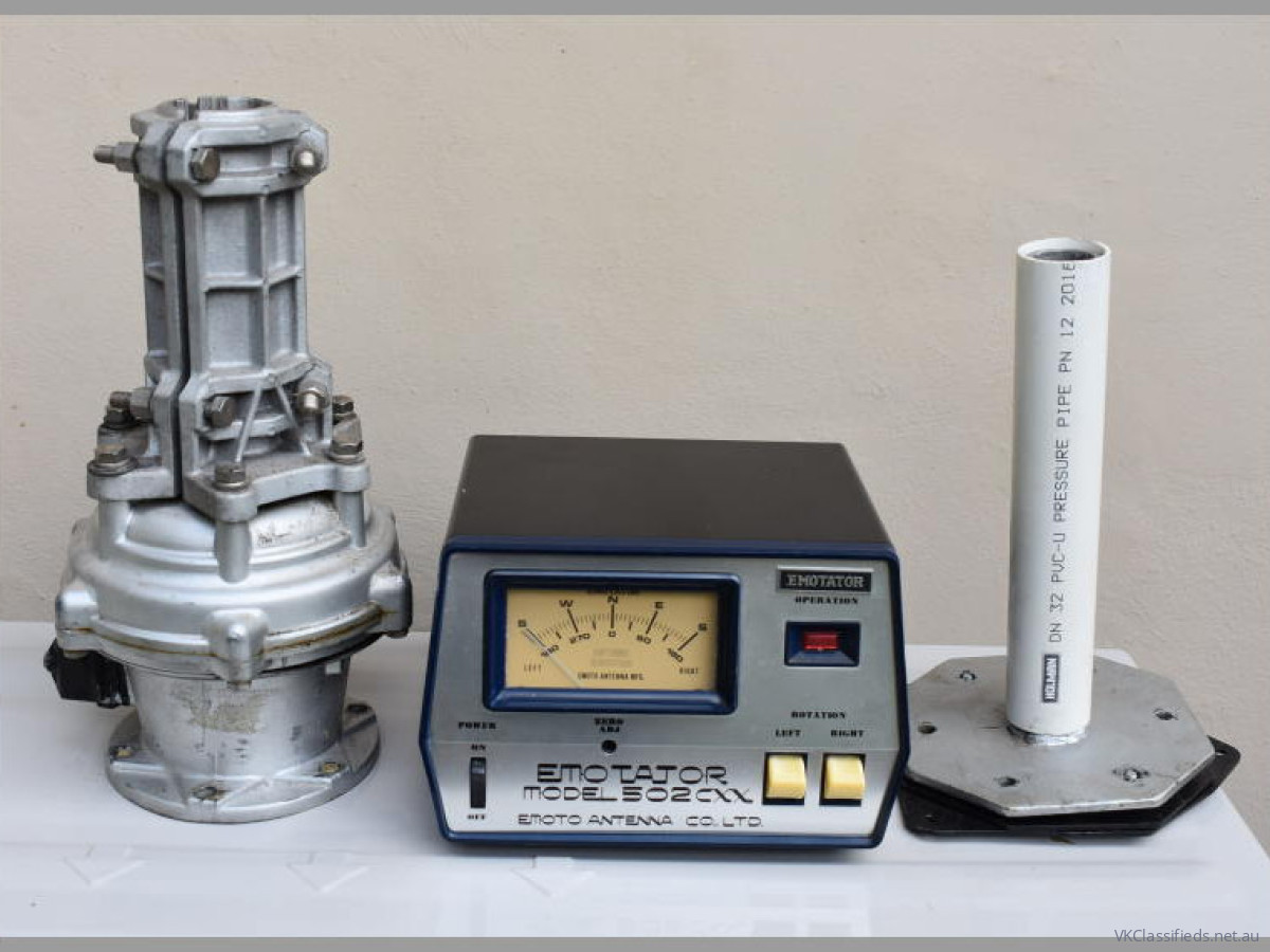 Hello and nice to see you. I'm moving to a retirement village and downsizing my antenna system, so I no longer need my EMOTATOR 502CXX. It works perfectly, or almost, because there's a small dip in the display around the "WEST" position, which is caused by a dirty spot on the control potentiometer. It doesn't affect its functionality at all! The rotor was cleaned and lubricated 16 months ago. Pickup preferred, but shipping is also possible, although the total weight is around 11 kg ($130 + shipping). 73, Arno, vk4jao