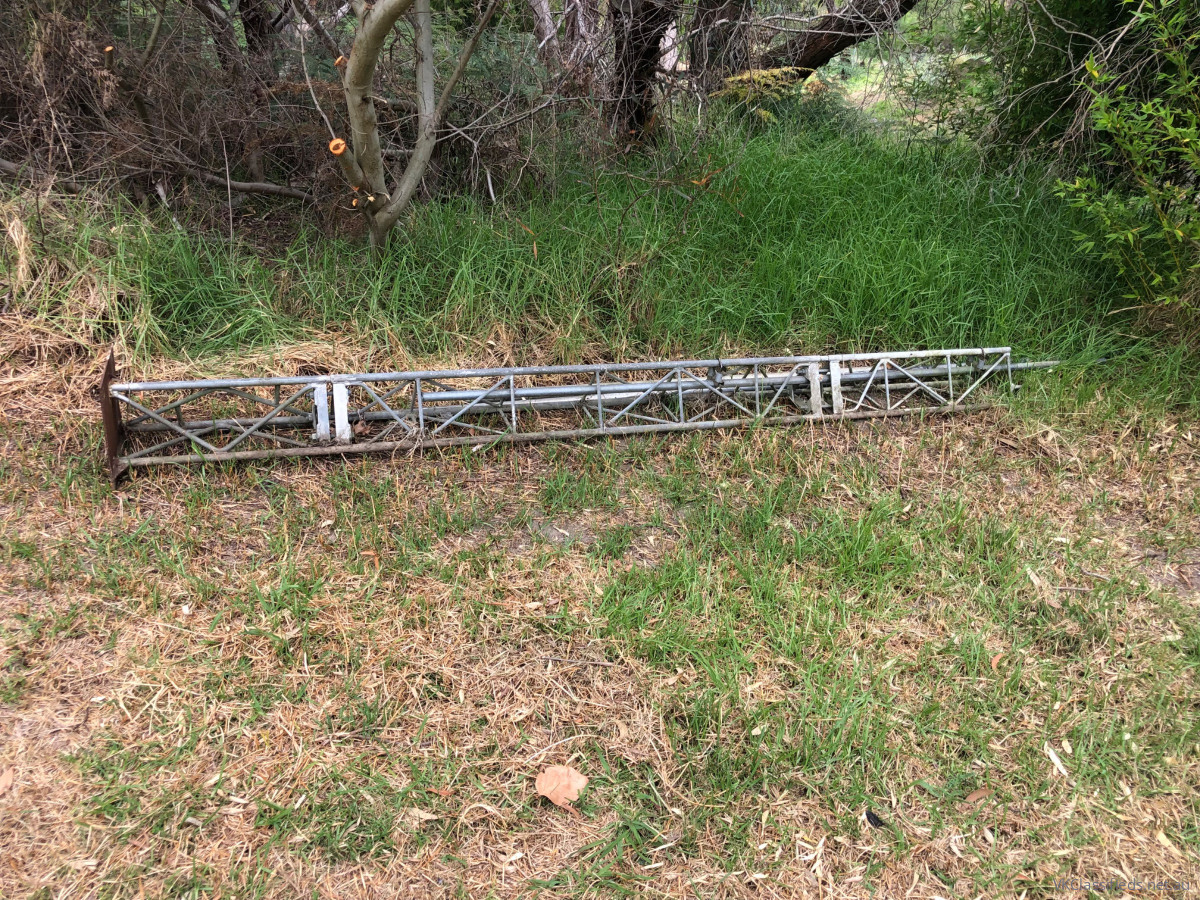 Bolt down mast with pole secured inside triangle section. Pole could be pulled out another meter. 260mm triangle width. Call Jeff on 0412170007 for more information. Pickup is Frankston