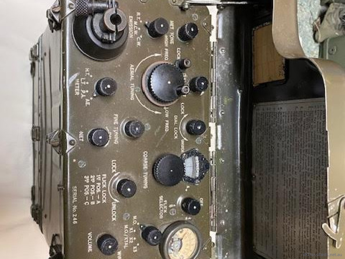 Complete with original hand set, whip antenna, junction box for headphones and hand mic. Ext Power lead, spare valves, PDF Manual with circuit. Xtals on 3575 and 3693, as well as Xtal OS.