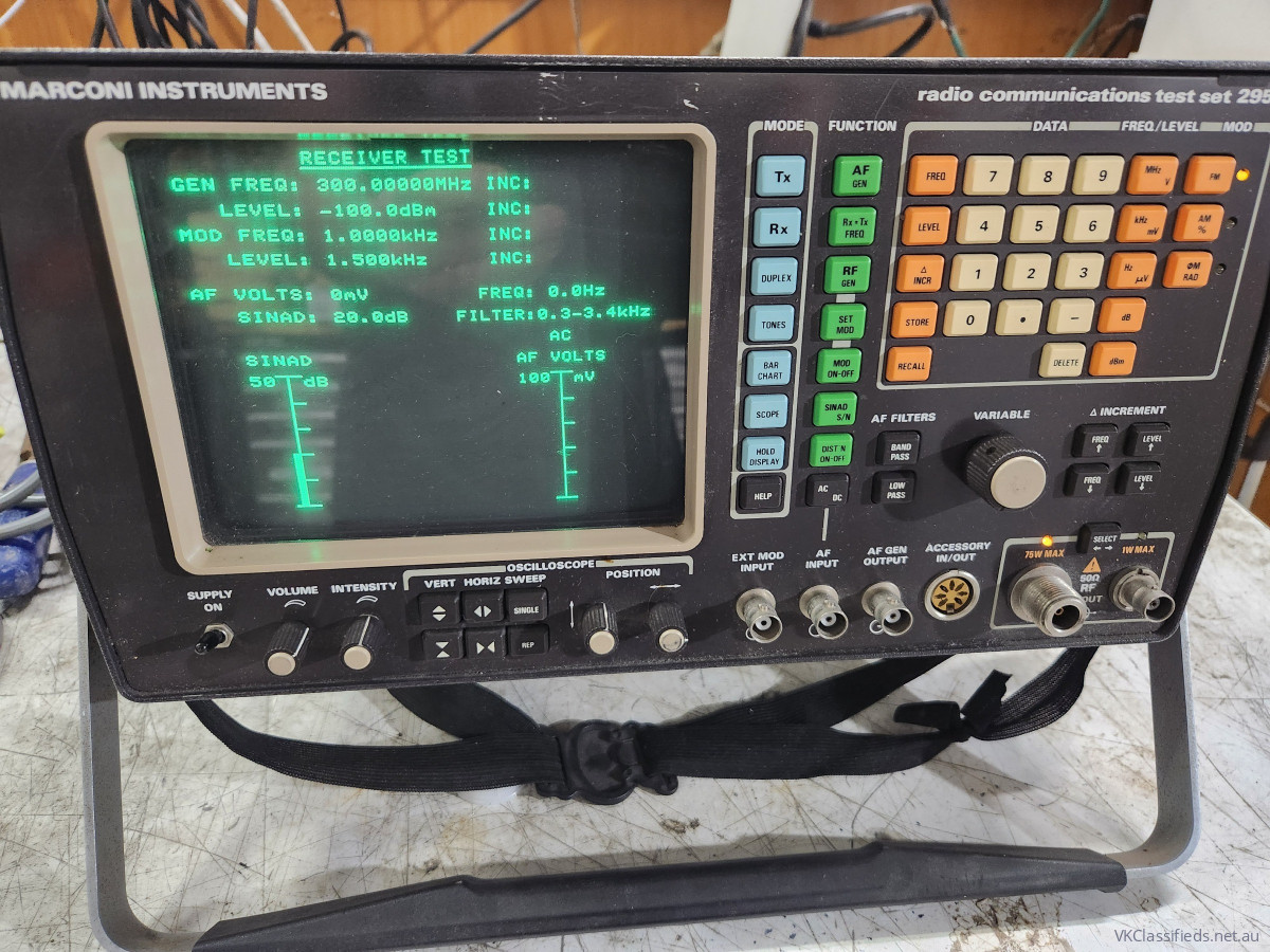 This unit was mine for many years, travelling then to Merimbula to a very good radio technician mate to use for a few more years and yep, like most Australian boomerangs, ended up back in Tangambalanga again some time back. This unit has been serviced, tested and is not your average 2955 which at best can be an unknown quantity if bought on various auction sites with no guarantees of what your getting. Im more than happy to demonstrate this unit working perfectly and its cheaper and definitely more dependable than any of the auction site units by a mile. If your after a good test set with over 12 years of good history between the two last owners, this is the one. The only slight issue I could find was actually lack of usage which required me to just continually use the buttons as they were a little stiff,(most were actually fine) but thats quite normal and 10 mins of pushing buttons, they always loosen up fast. The Marconi 2955 is simple to use, generally has everything you need to service HF VHF and UHF Transceivers, its not complex like some of my other equipment here requiring me to think way too much at times. This unit is just reliable, can be run from AC or DC, has a reliable scope on board and an especially easy to use RX generator with tone access utilities and TX is able to be measured to a very high level accuracy for power, frequency, again tone, etc etc.
