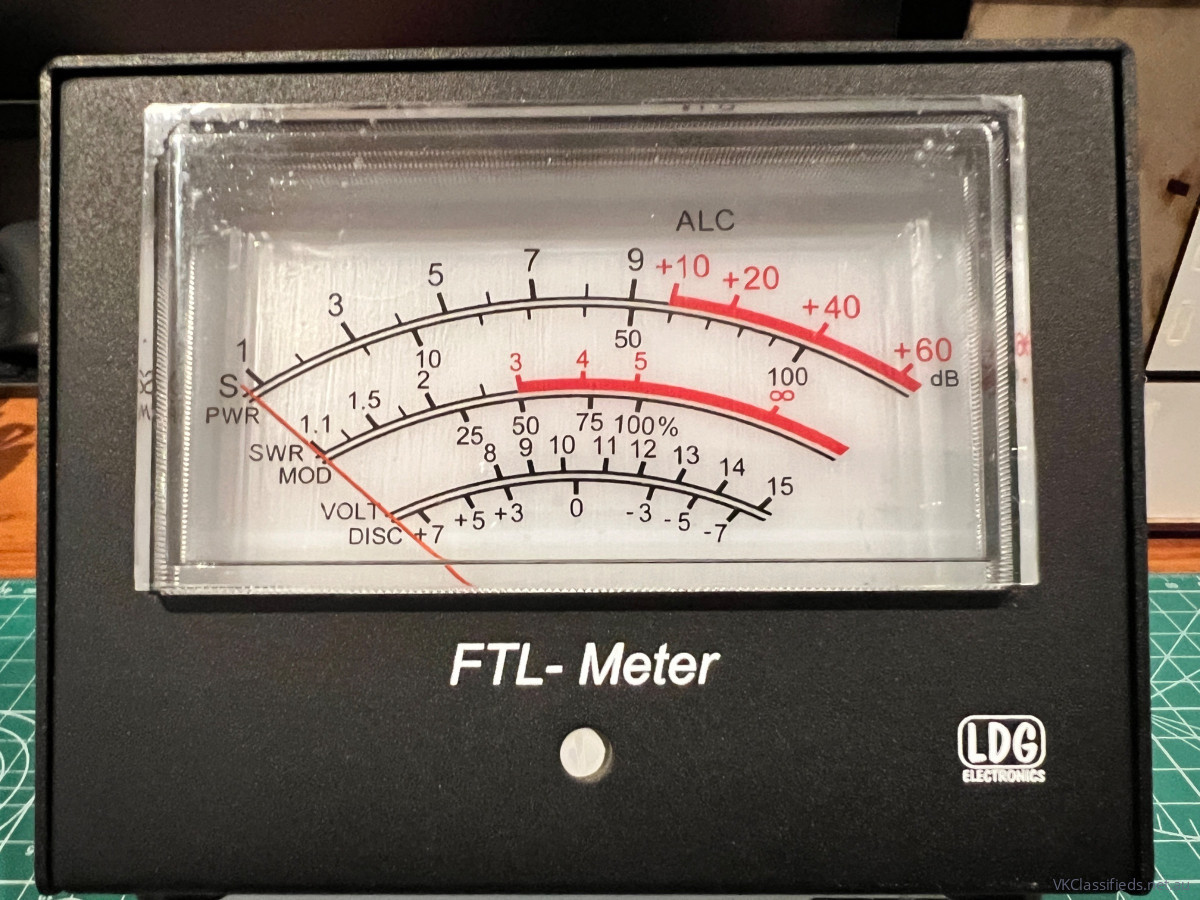 The LDG Electronics FTL-meter is a 4.5 inch external analog meter designed for the Yaesu FT-857D and FT-897D transceivers. It provides highly readable,7-function monitoring, including Signal Strength, Discriminator, Power Output, SWR, Modulation, ALC, and Voltage. It features a blue LED backlight requiring 11–15 VDC if you wish to use and connects to the radio via a 3-foot cable. In as new condition in original box, still has the screen protector plastic in place!