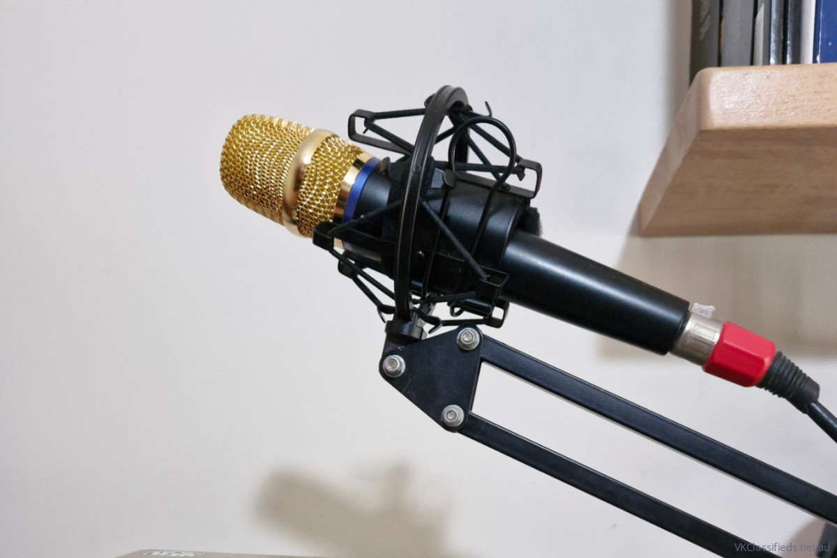 The Gold Elite has an internal foam windscreen and includes a 5/8”-27 microphone clip that is designed for Heil booms and desk stands.