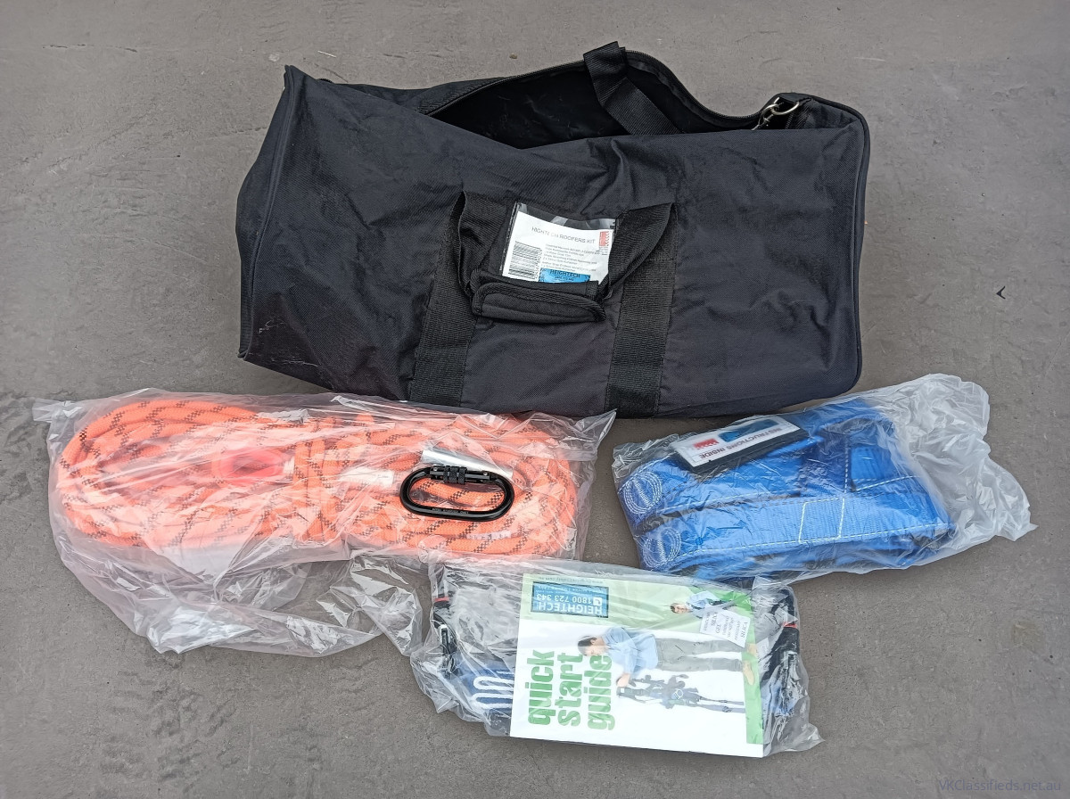 Height tech climbing harness kit for climbing towers or trees for antenna erection.