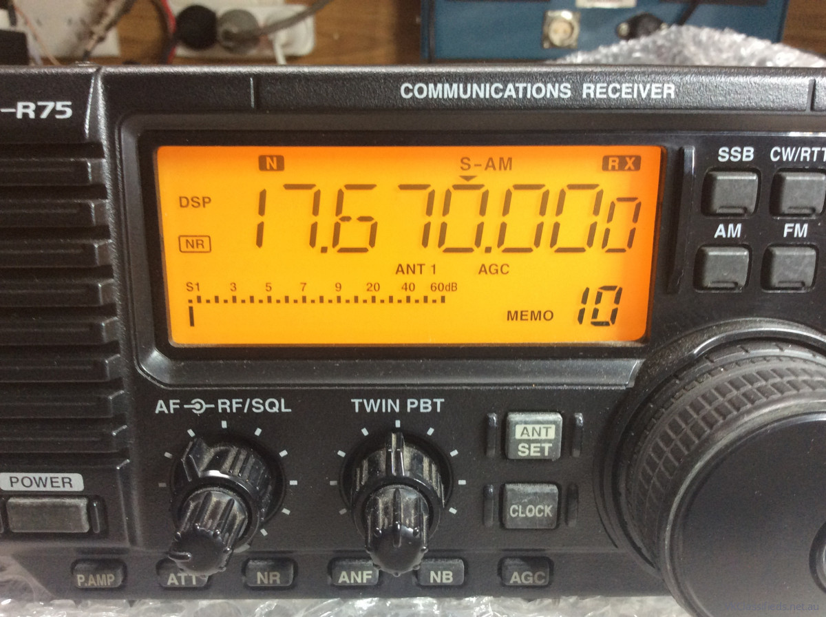 Near Mint condition IC R75 HF receiver. 30Khz to 60Mhz all modes. Has additional 500 and 2.4Khz ceramic filters. Has had a 10Mhz GPS frequency reference input receptical installed wereby the interal mixers can use the units own oscillator or a 10Mhz source gained from a separate GPS unit. selection is by a side switch on the rear pannel. The unit comes with the original linear power supply pack and user manual.