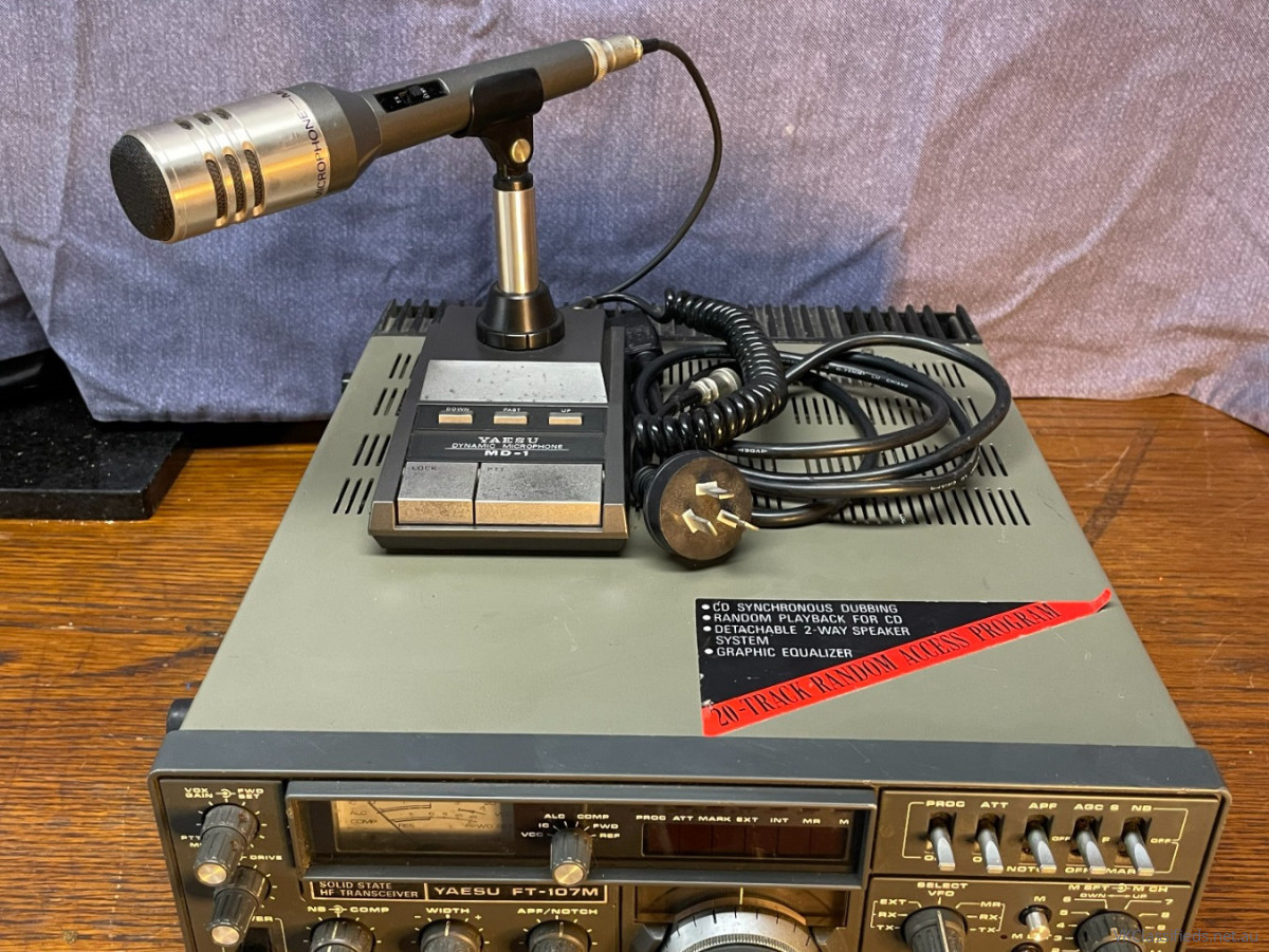 Yaesu Ft107M paired with MD 1 dynamic mic. Pics form part of description, dummy load and VSWR meter not part of sale. Works as intended deadkey swing shown. Postage included in sale price Australia wide only.