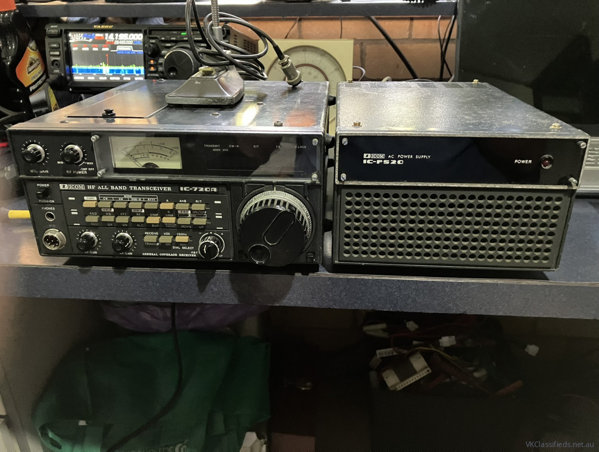 IC-720A, transcisever. sort of works. would make a good parts radio, or if you love the clickity clack song it sings. Works on some bands and others are not there art all.