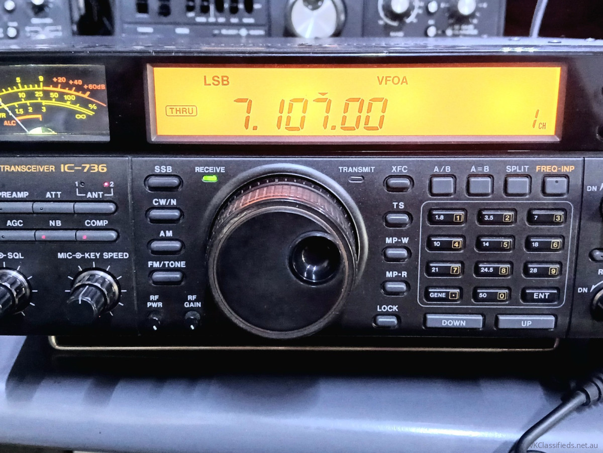 Icom IC736 base hf/50 , 100w 240v transceiver. Excellent condition, Desk mic, hand mic, manuals and box. Optional high stability xtal and cw filter installed. Working well on all bands. Located Mooroopna 3629, can post.