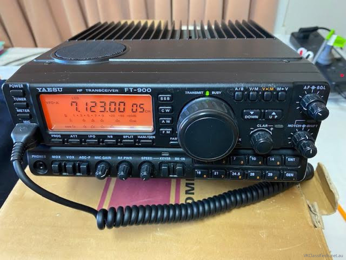 Selling my YAESU FT900 HF transceiver. Built in ATU, power cable Yaesu hand mic, rare separation cable, mounting brackets and manual. Mint condition in original packaging.