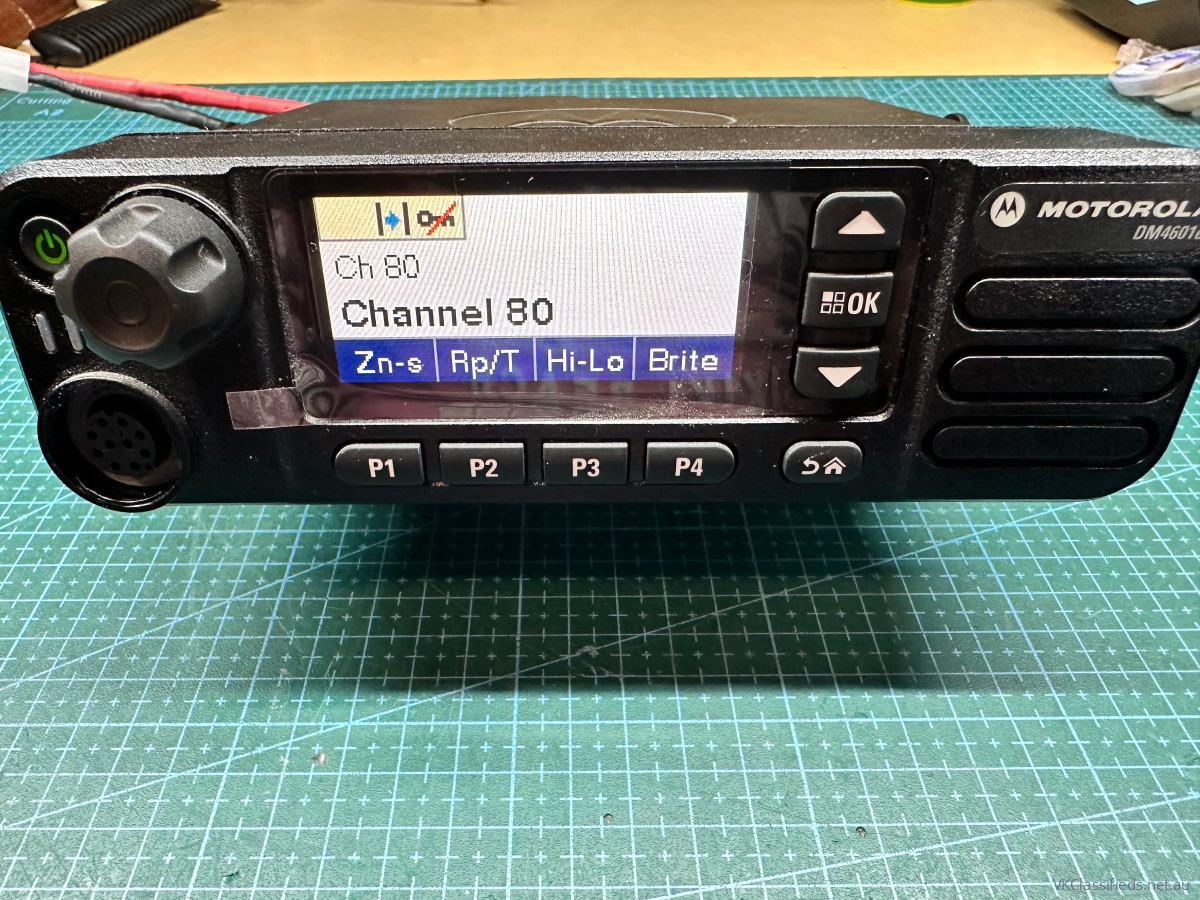 Radio comes complete with mounting bracket, thumb screws, power lead and Mic
