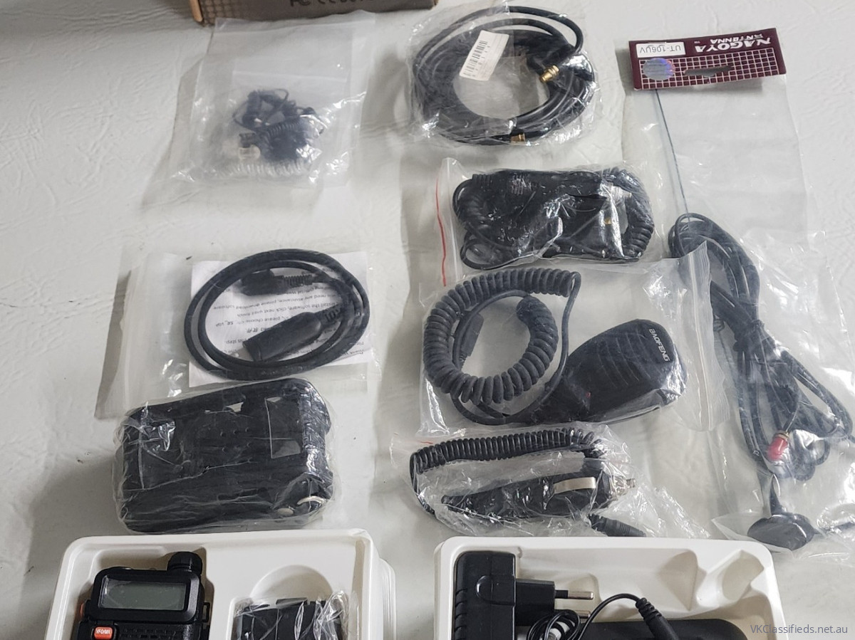 Mic,Car battery eliminator,Programing lead,Extension ear peice for mic,Magnetic antenna,Carry cover case and extension SMA lead for antenna.