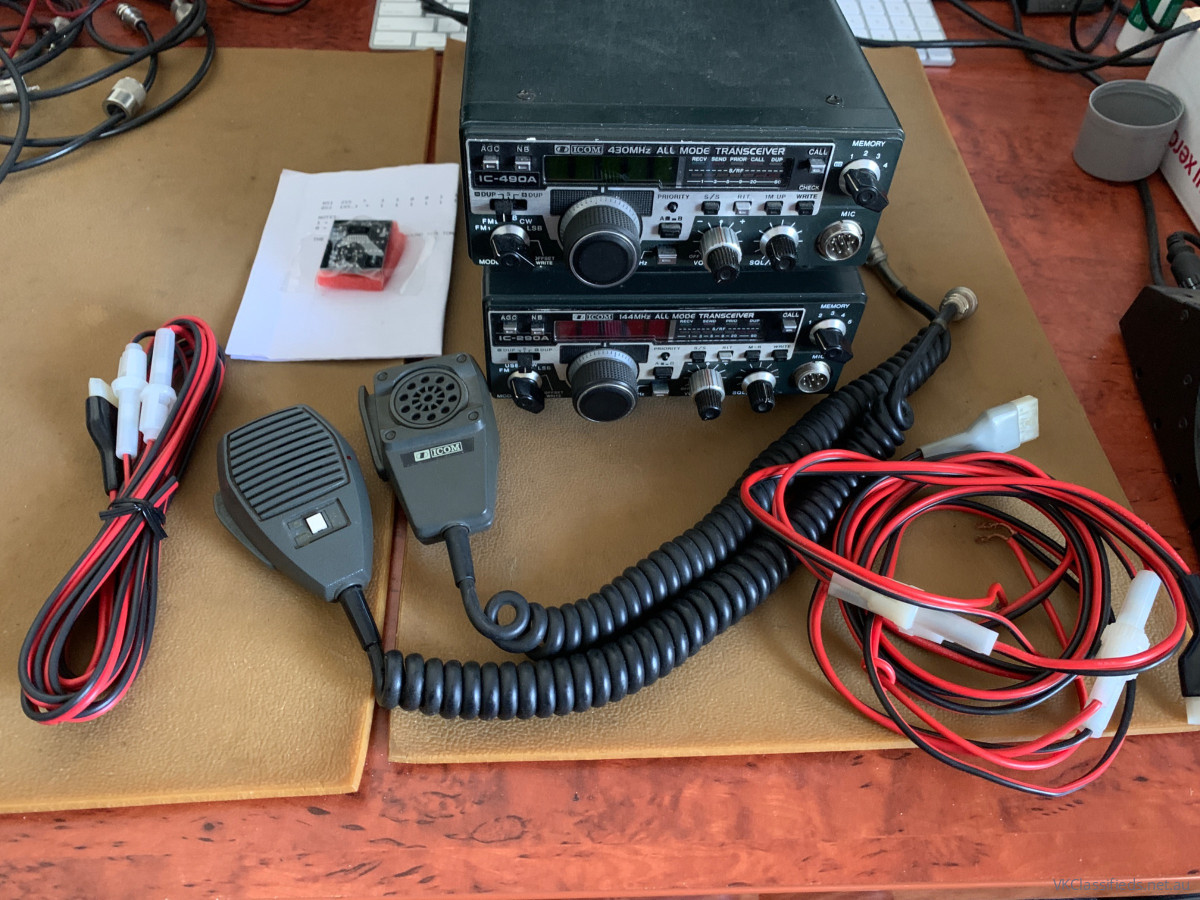 icom IC290A 2m all mode and icom IC490A 70cm all mode mobile's come with Microphones and DC leads, IC490A has CTCSS encode board fitted and the Tone encode board for the IC290A is supplied but not installed.